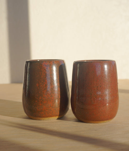 Fired in January 2025, these pieces reached approximately 2350 degree Fahrenheit just used wood as the fuel source. The unpredictable atmosphere inside the wood kiln has made each piece unique. You may notice fine crystals in the glazes, ash deposits around the rims and handles, and rich colors from where the flames licked over the pots.